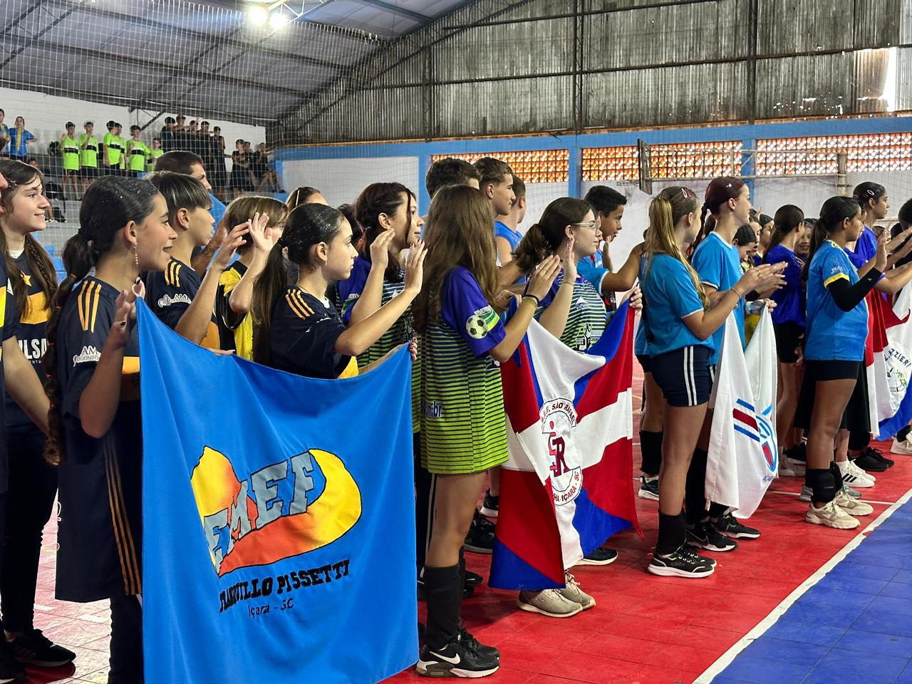 Emoção e integração marcaram a abertura da 43ª edição dos Jogos Escolares de Içara (Joesi) que teve início na última segunda-feira, dia 13, no Ginásio Municipal de Esportes. O momento, promovido pela Fundação Municipal de Esportes (FME) de Içara, reuniu estudantes de diferentes redes de ensino no município. Durante a cerimônia o público contou com apresentação do Coral Infantil da Fundação Cultural, desfile das delegações com bandeiras das escolas, juramento dos atletas e o tradicional acendimento da pira olímpica. A ação seguirá durante a semana, com seis dias de competição.