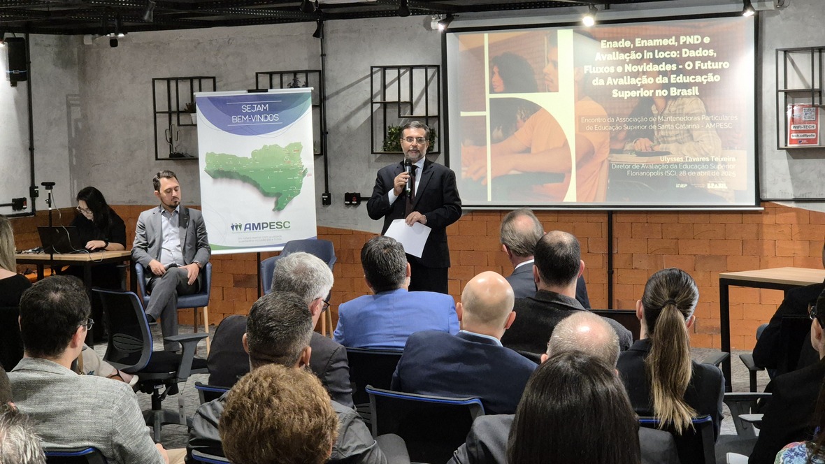 Durante o encontro, o diretor de Avaliação da Educação Superior do Inep, Ulysses Tavares Teixeira, apresentou mudanças recentes e informações de rotina sobre as avaliações no Brasil. Destacou mudanças importantes previstas no Exame Nacional de Desempenho dos Estudantes (Enade), no Exame Nacional Docente (PND) e na nova rotina anual de avaliações para cursos de Licenciatura e Medicina (Enamed). Ulysses ainda abordou o aprimoramento dos instrumentos de avaliação in loco, com foco em áreas específicas.