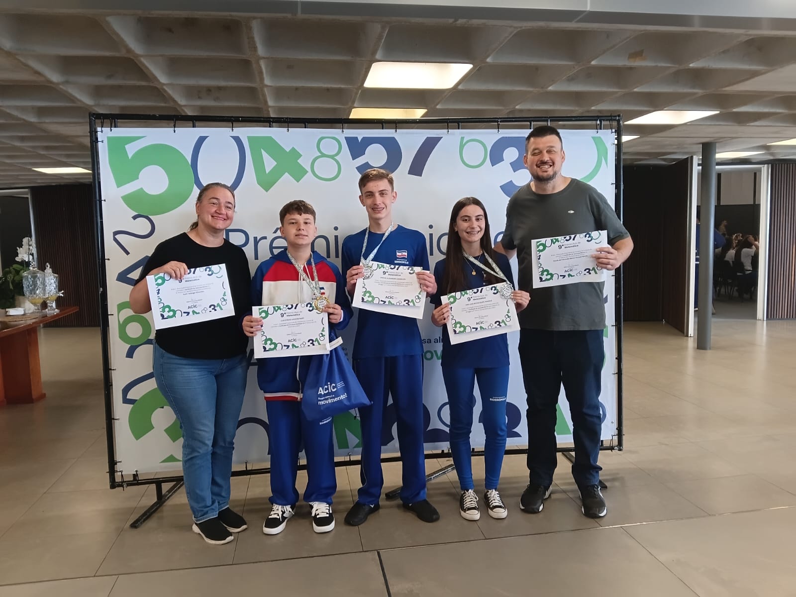Os estudantes premiados foram Luiz Otávio Uggioni Nart, do 8º ano, que conquistou a medalha de ouro; Samuel Alexandre Cambruzi, também do 8º ano, e Ana Luiza Bitencourt Nazário, do 9º ano, que receberam medalhas de prata, todos da Escola Aurora Peterle. Já Lucas Machado Cerqueira, da Escola Estadual José do Patrocínio, também foi prata.