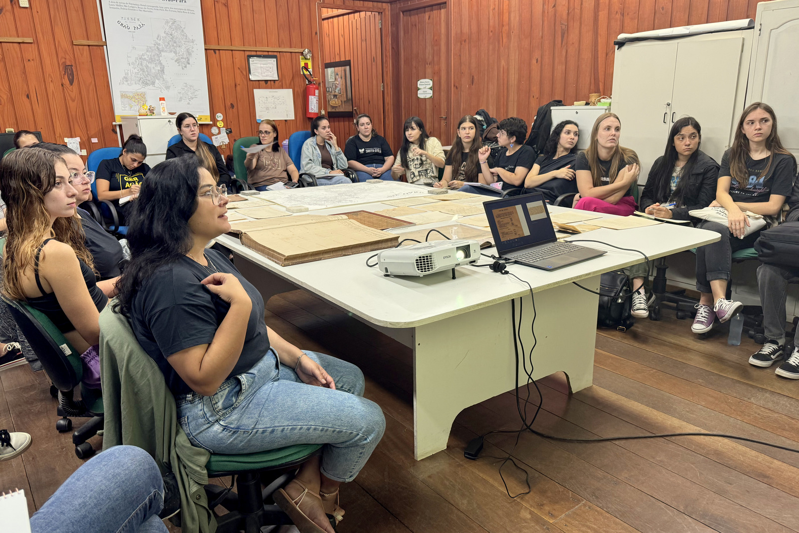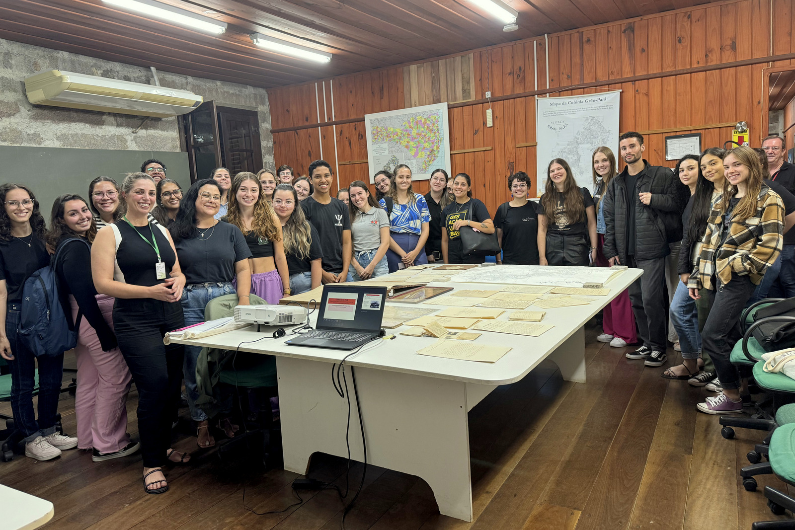 A turma da disciplina de Psicologia Social, ministrada pela professora Sara da Silva Böger, conheceu a documentação da Colônia Grão-Pará, que mostra o choque de grupos humanos na região de Orleans. Segundo a professora, as aulas no Museu são fundamentais para a formação profissional dos psicólogos. “Às vezes, a história fica muito abstrata na sala de aula, mas, quando a gente vem ao Museu, o acadêmico vê os registros documentados, e a história se torna mais concreta e palpável”, comentou.